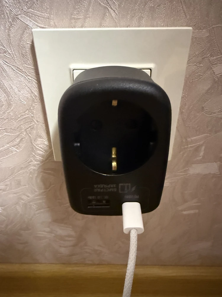 1 розетка + 1 USB-A (QC 3.0, 18 Вт) + 1 USB-C (PD, 20 Вт)